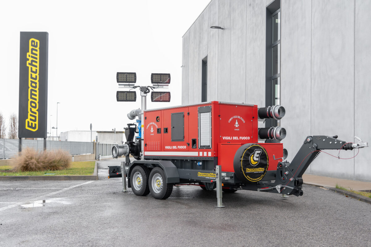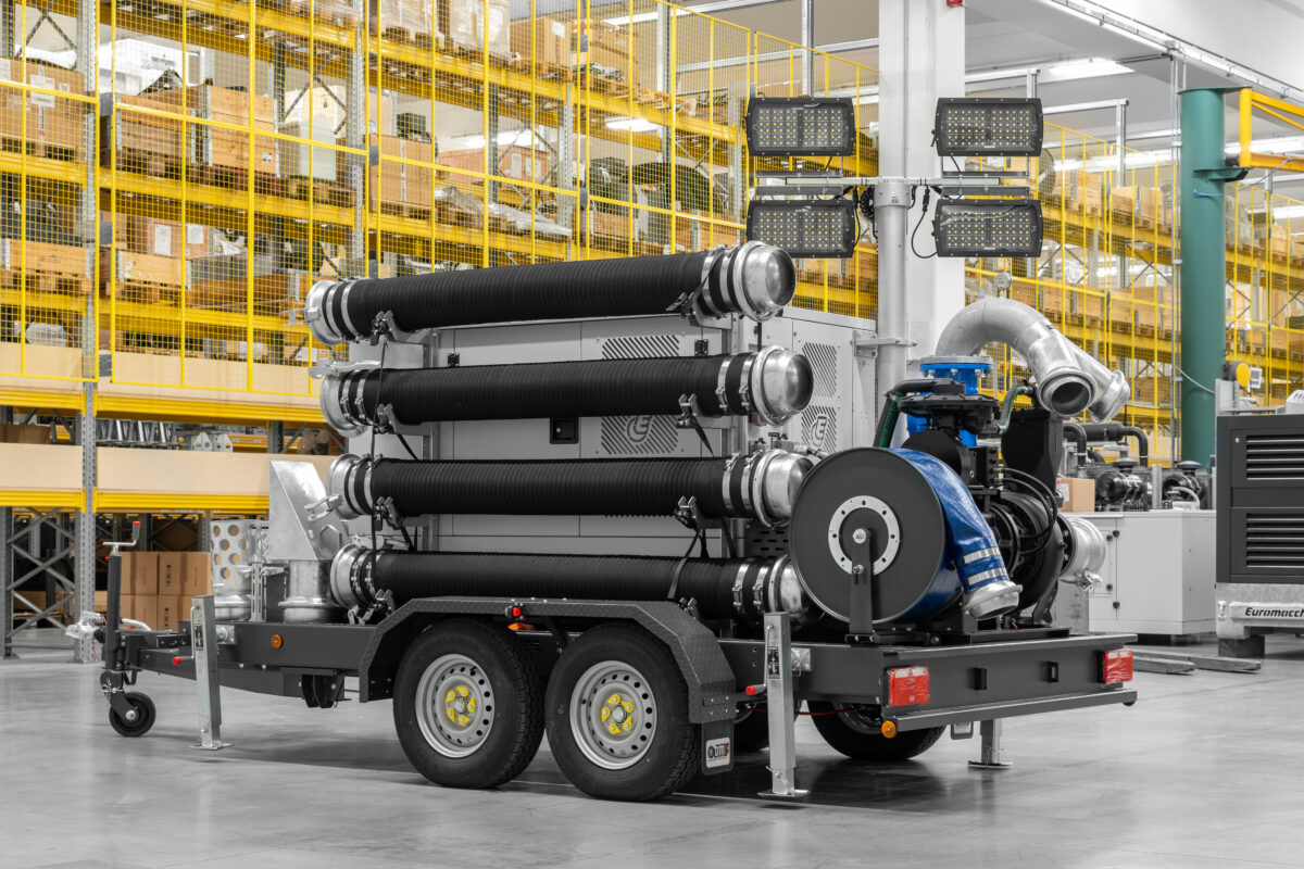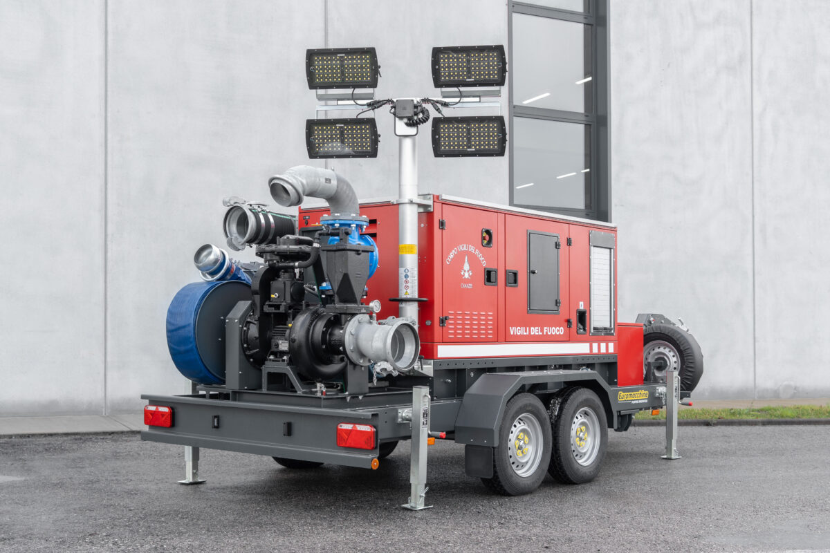 The patented multifunctional Lampo Emergency unit can be used simultaneously as a generator, lighting tower, and pump, and is capable of varying flow rates and pressures through an inverter. LAMPO ensures water drainage with pumps ranging from 100 to 500 m³/h.