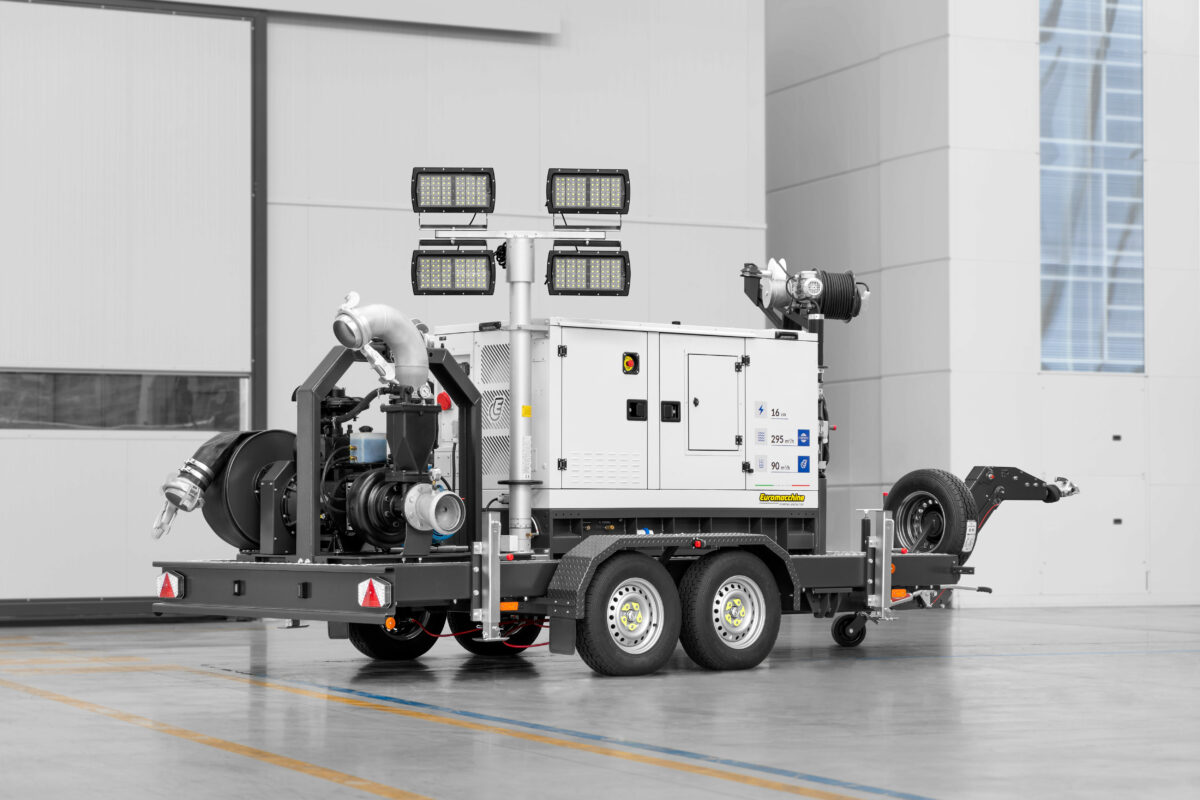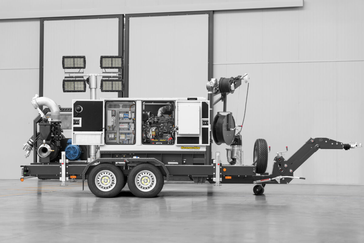 Lampo Emergency has always been our flagship product for dealing with danger and emergency situations. Equipped with an electric pump controlled by a VFD, this multifunctional unit is the ideal solution in case of flooding. The lighting tower with LED lights illuminates the work area during blackouts, and the generator provides power supply. The unit also includes a compressor for operating external pneumatic tools and a road trailer.